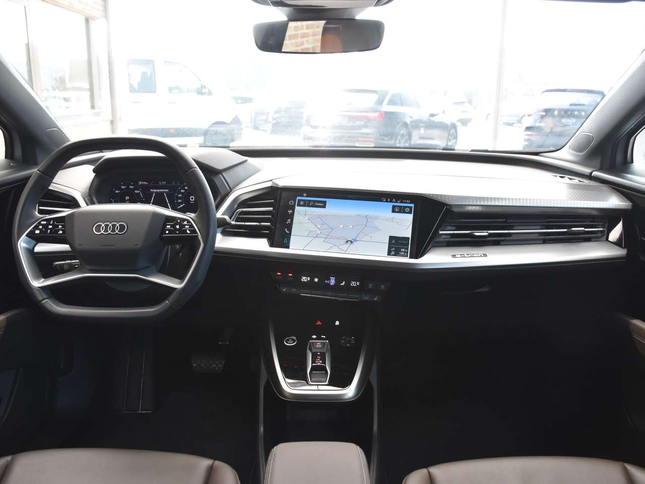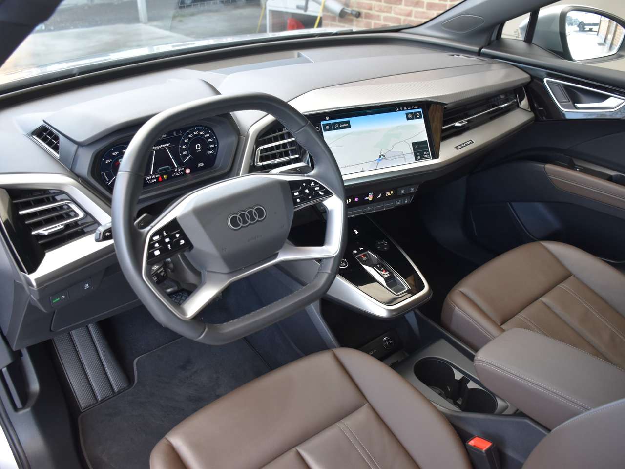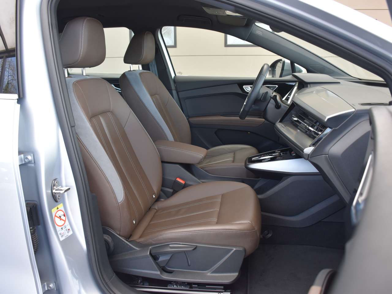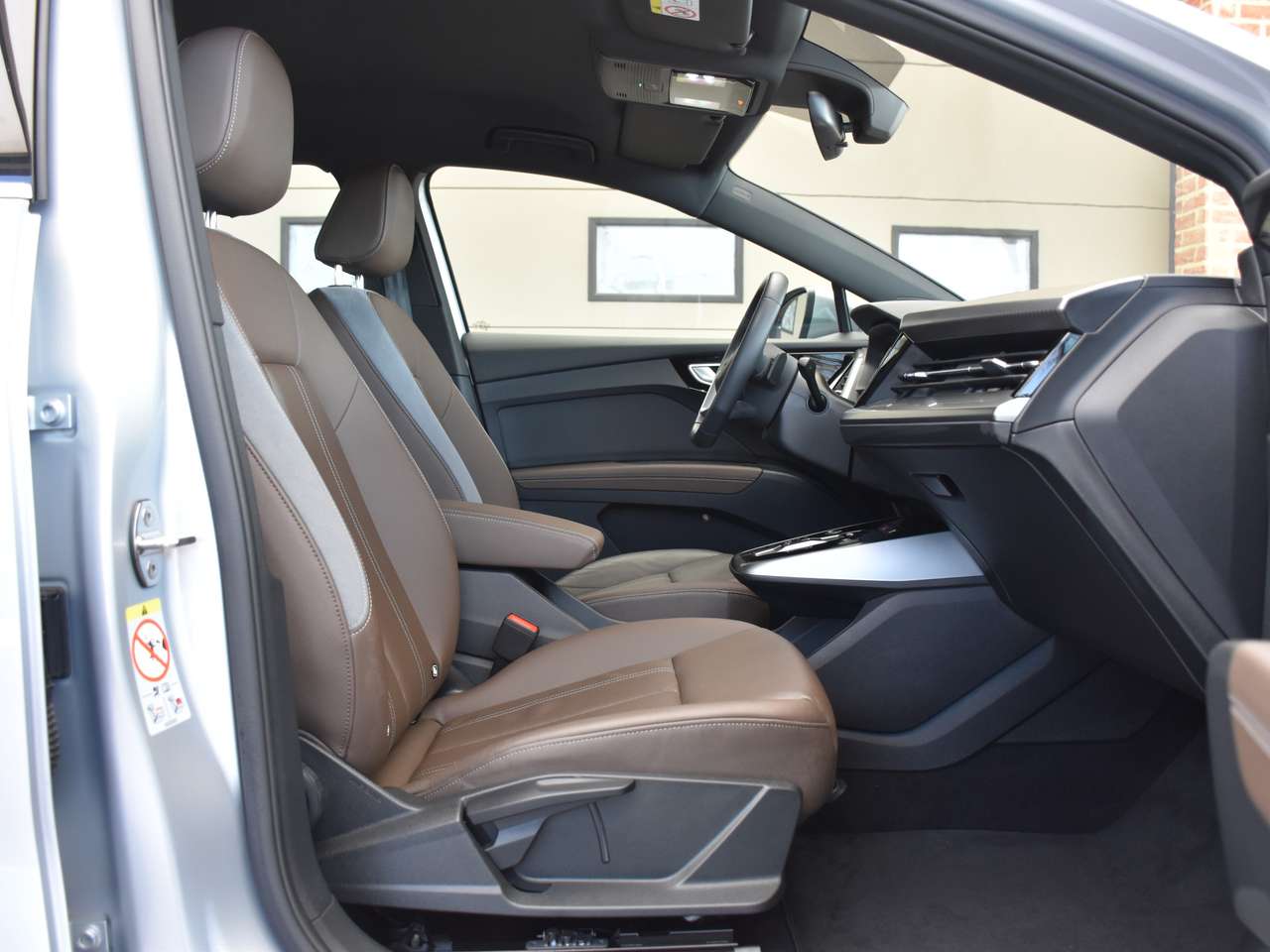 Deze elegante zilverkleurige Q4 e-tron valt direct op, aangevuld met een luxueus bruin lederen interieur dat een verfijnde ambiance creëert voor elke rit. Onder de motorkap bevindt zich een krachtige 286 pk elektromotor, die zorgt voor een dynamische en fluisterstille rijervaring, geheel volgens de premium standaard van Audi.