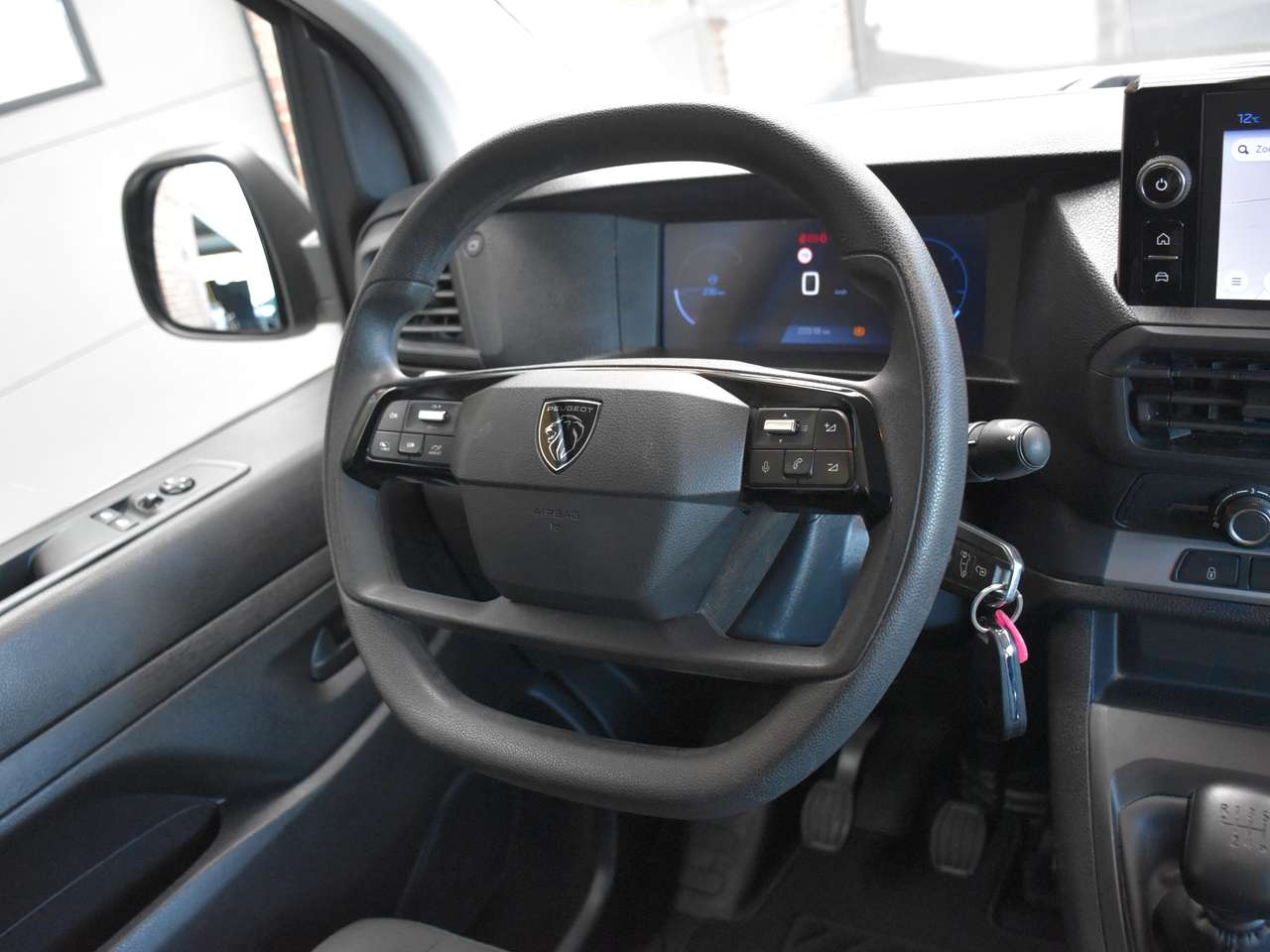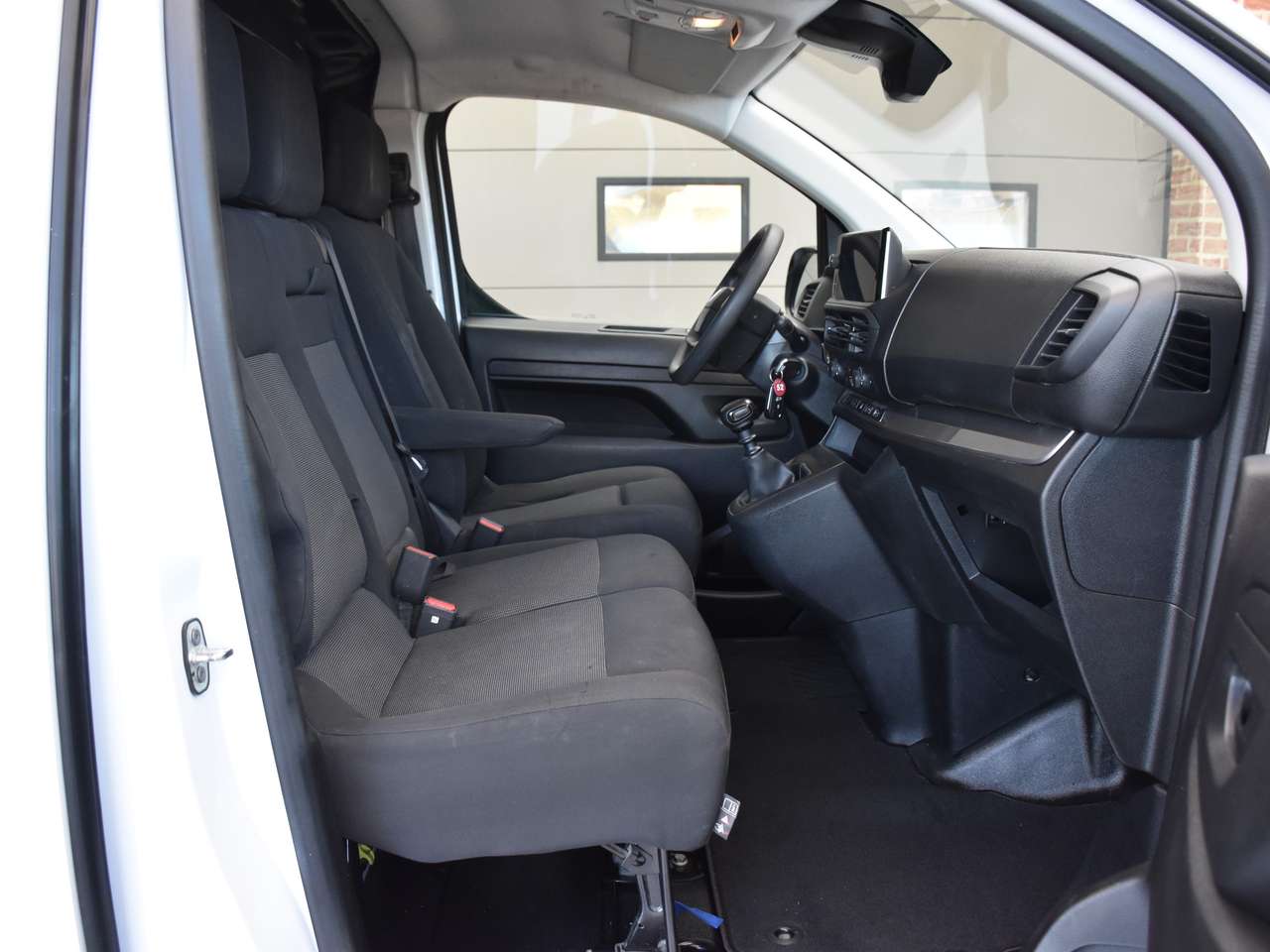 Het comfortabele zwarte stoffen interieur is uitgerust met moderne voorzieningen die elke rit aangenaam maken. Manoeuvreren in drukke omgevingen is een fluitje van een cent dankzij de 360° camera en de uitgebreide parkeersensoren voor en achter. U blijft altijd verbonden en op koers met het geïntegreerde navigatiesysteem, ondersteund door Android Auto en Apple CarPlay, te bedienen via het handige aanraakscherm. Voor optimaal rijgemak beschikt deze Expert over airconditioning, cruise control en een lederen multifunctioneel stuurwiel. Daarnaast bent u verzekerd van een hoge veiligheid dankzij geavanceerde rijhulpsystemen zoals Lane Departure Warning, Dodehoekdetectie en botswaarschuwing, terwijl de praktische schuifdeur rechts het laden en lossen vergemakkelijkt.